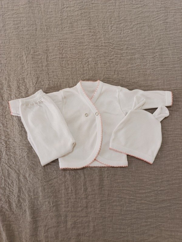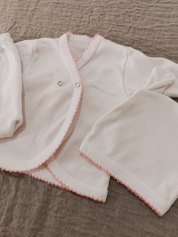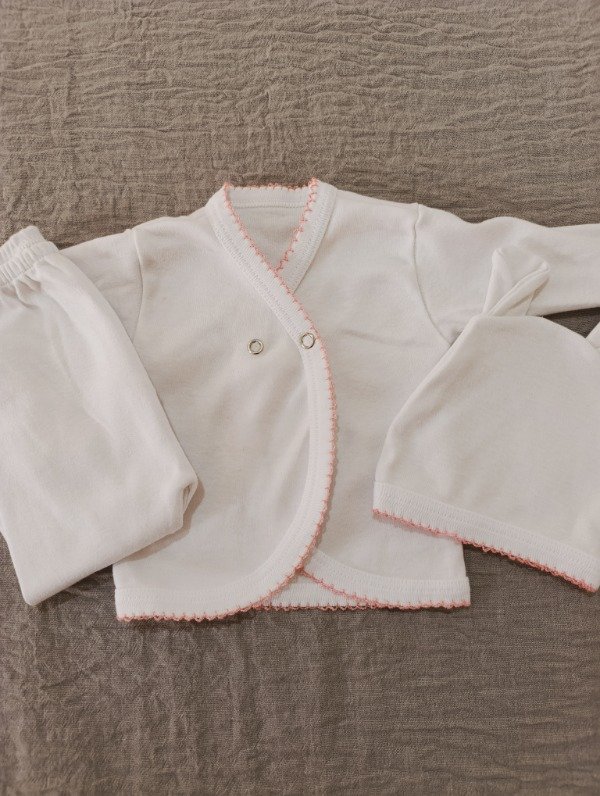 Ajuar 3 piezas con picot - Rosa claro