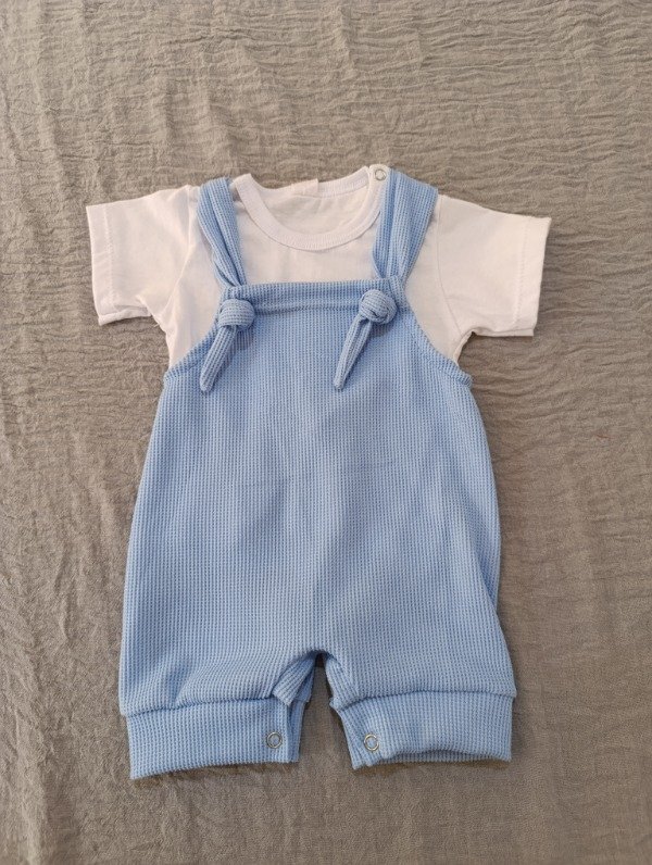 3-6 MESES - Enterito wafle nudo + remera - Celeste