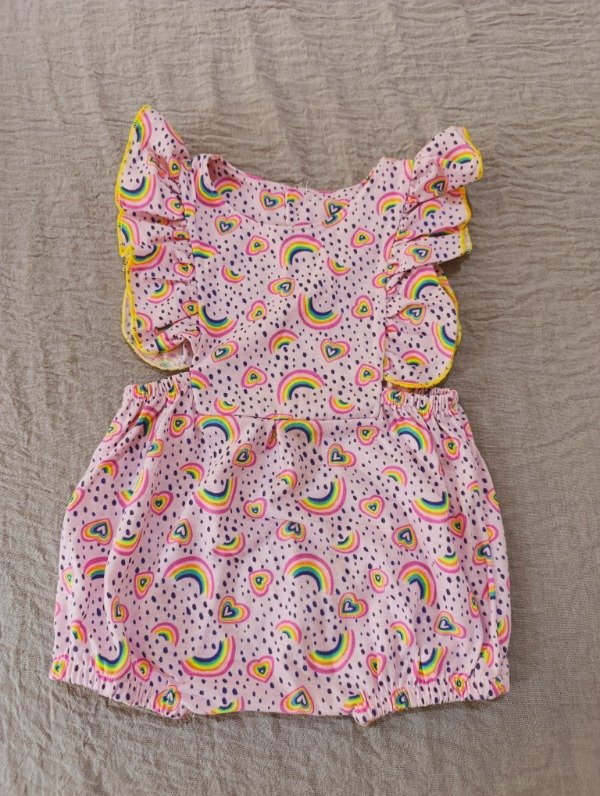 Enterito tipo jumper de algodón. Abierto en los costados, bombachudo la parte de abajo. De algodón.